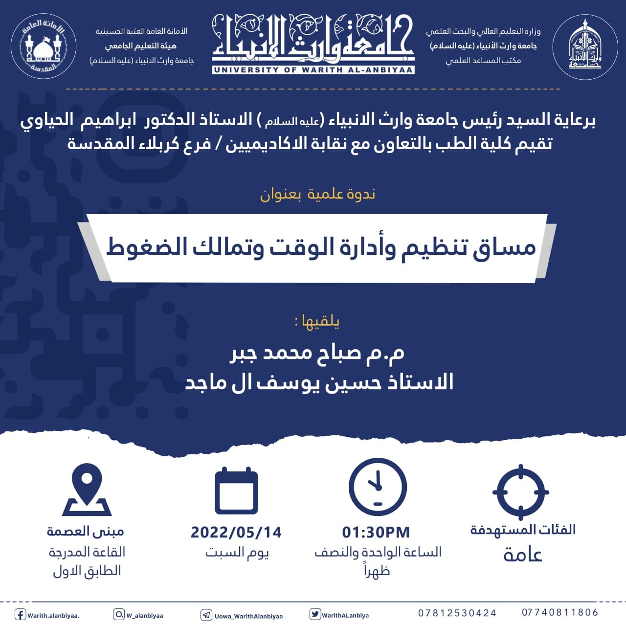 علماً أن الندوة تستهدف الملاكات التدريسية والطلبة في الجامعة.