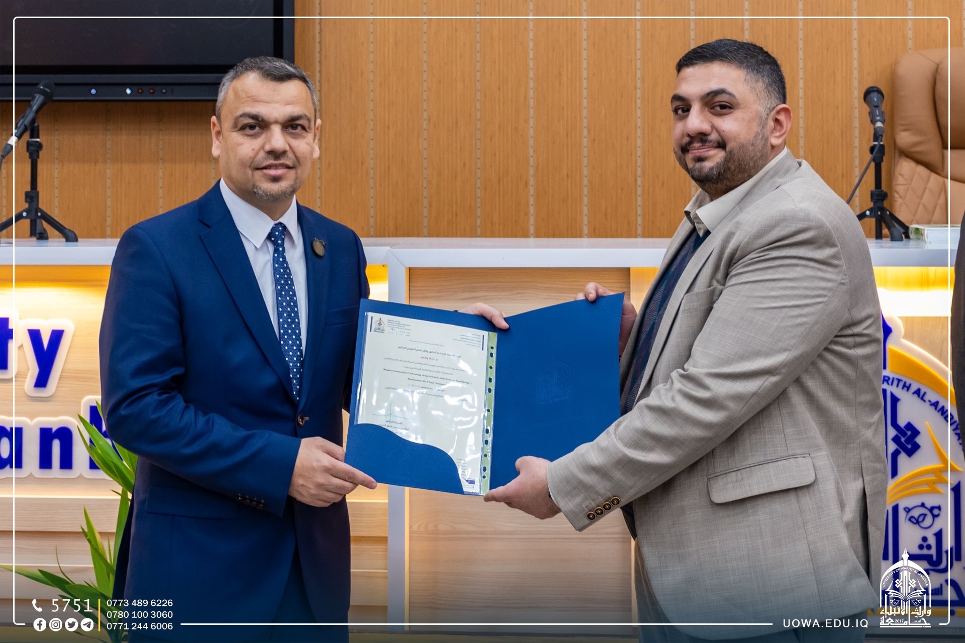 The Department of Civil Engineering, in collaboration with the Department of Scientific Affairs at the University of Warith Al-Anbiyaa (Peace Be Upon Him), organized a scientific seminar titled "Modern Construction Technology Using Hydraulic Jacks Systems Rapid Bridge Replacement on 5 Days Timelapse." The seminar was presented by Dr. Haitham Hassan Mutab Al-Daami, an expert in the design of steel structures and concrete facilities from the University of Babylon.