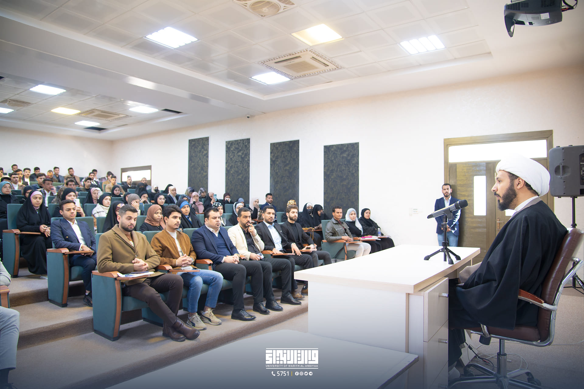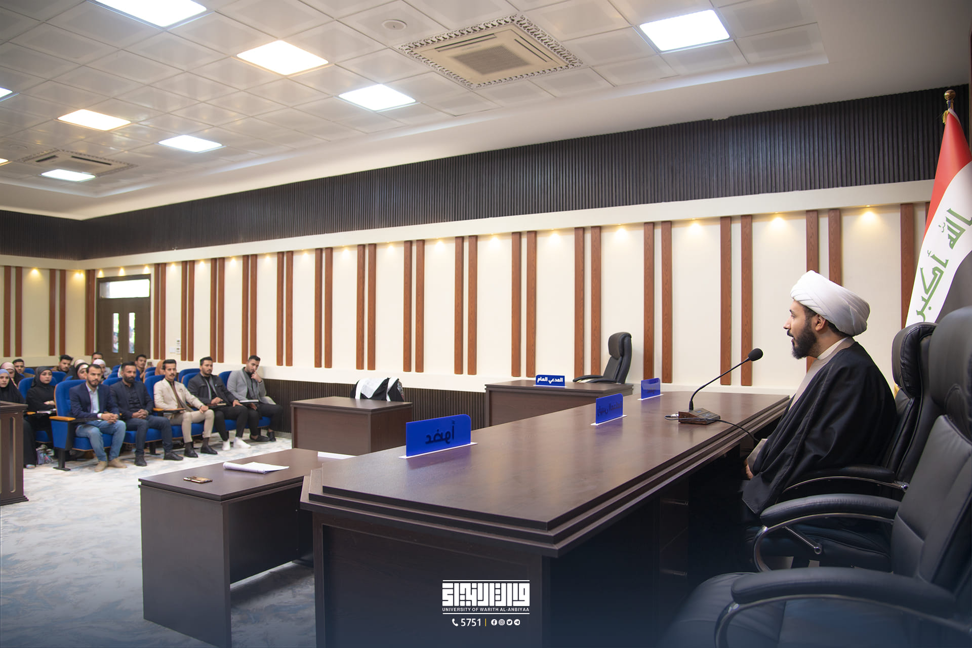 The College of Law at the University of Warith Al-Anbiyaa (peace be upon him), in collaboration with the Islamic Center for Studies and Research in Tunisia, organized a dialogue session on the relationship between law and Islamic Sharia. The event featured the presence of Sheikh Ahmed Salman, the director of the center, who answered questions from law students regarding various aspects related to the compatibility of laws with Islamic Sharia.