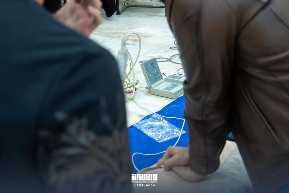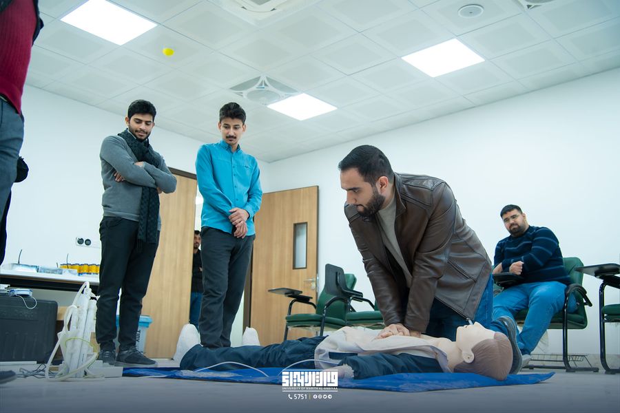 The College of Medicine at the University of Warith Al-Anbiyaa, in coordination with the Iraqi Red Crescent Society, Karbala Branch, organized a training workshop for the students of the college on "First Aid." The workshop included training participants on how to provide first aid to patients and injured individuals in emergency situations and accidents, covering all necessary steps to deal with these situations in a simplified manner, with practical application to facilitate learning and wise decision-making to prevent these problems.
