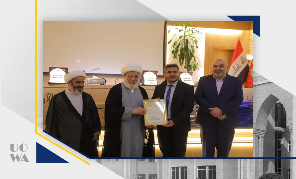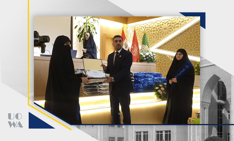 At a ceremony celebrating top students in Iraqi universities, the Women's Media Division at the Holy Shrine of Imam Hussein (PBUH) honoured the outstanding female students from the University of Warith Al-Anbiyaa (PBUH) as well as all the organisations and individuals who made this initiative a success. His Eminence Sheikh Abdul Mahdi Al-Karbalai (may his glory be long), the legal guardian of the Holy Shrine of Imam Hussein (PBUH), the president of the university, Professor Dr. Ibrahim Saeed al-Hayawi, and several other religious, scientific, and academic figures were present.