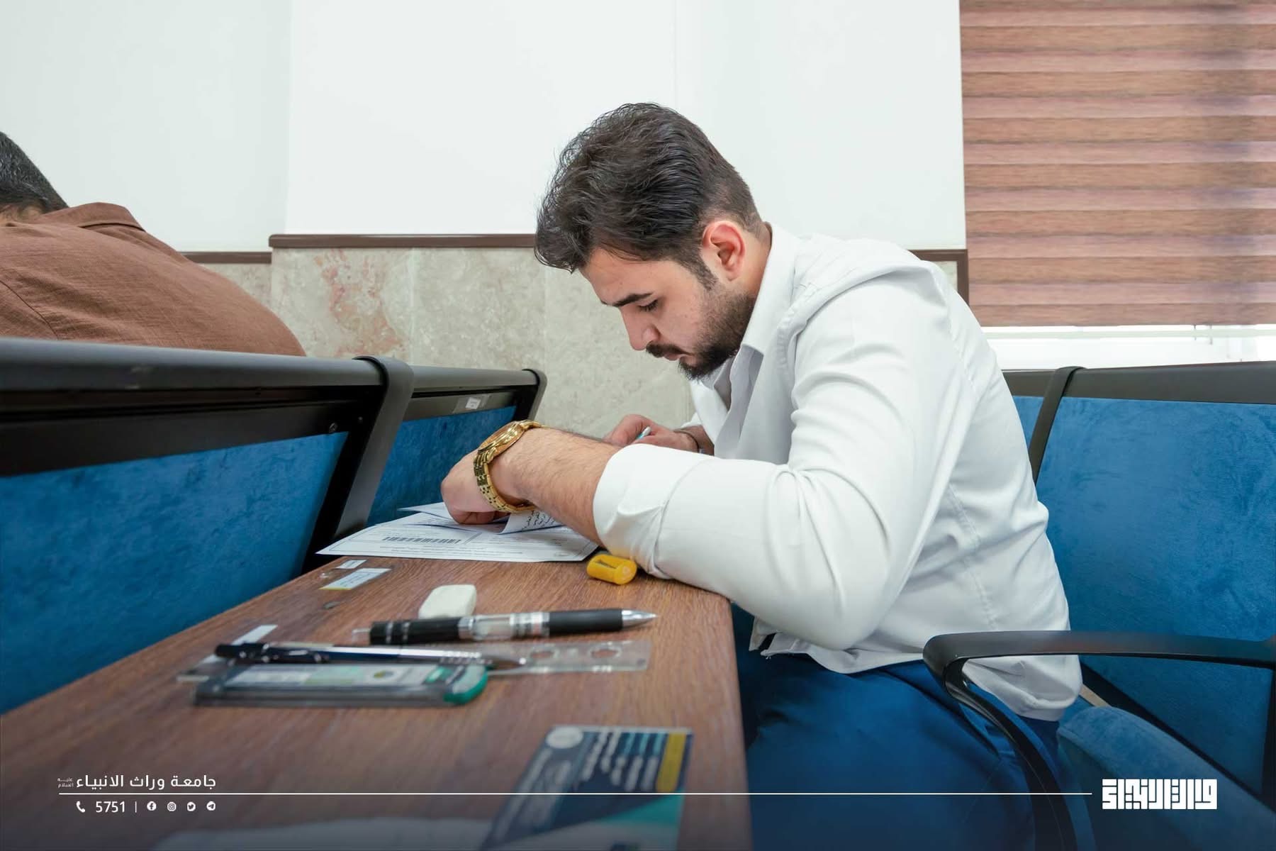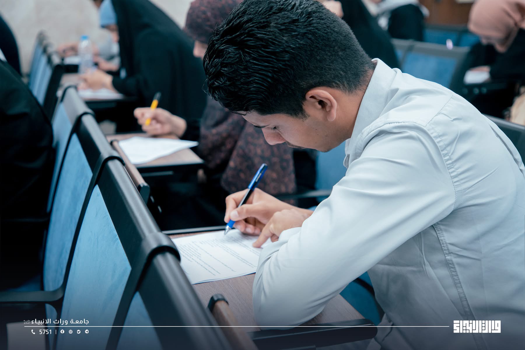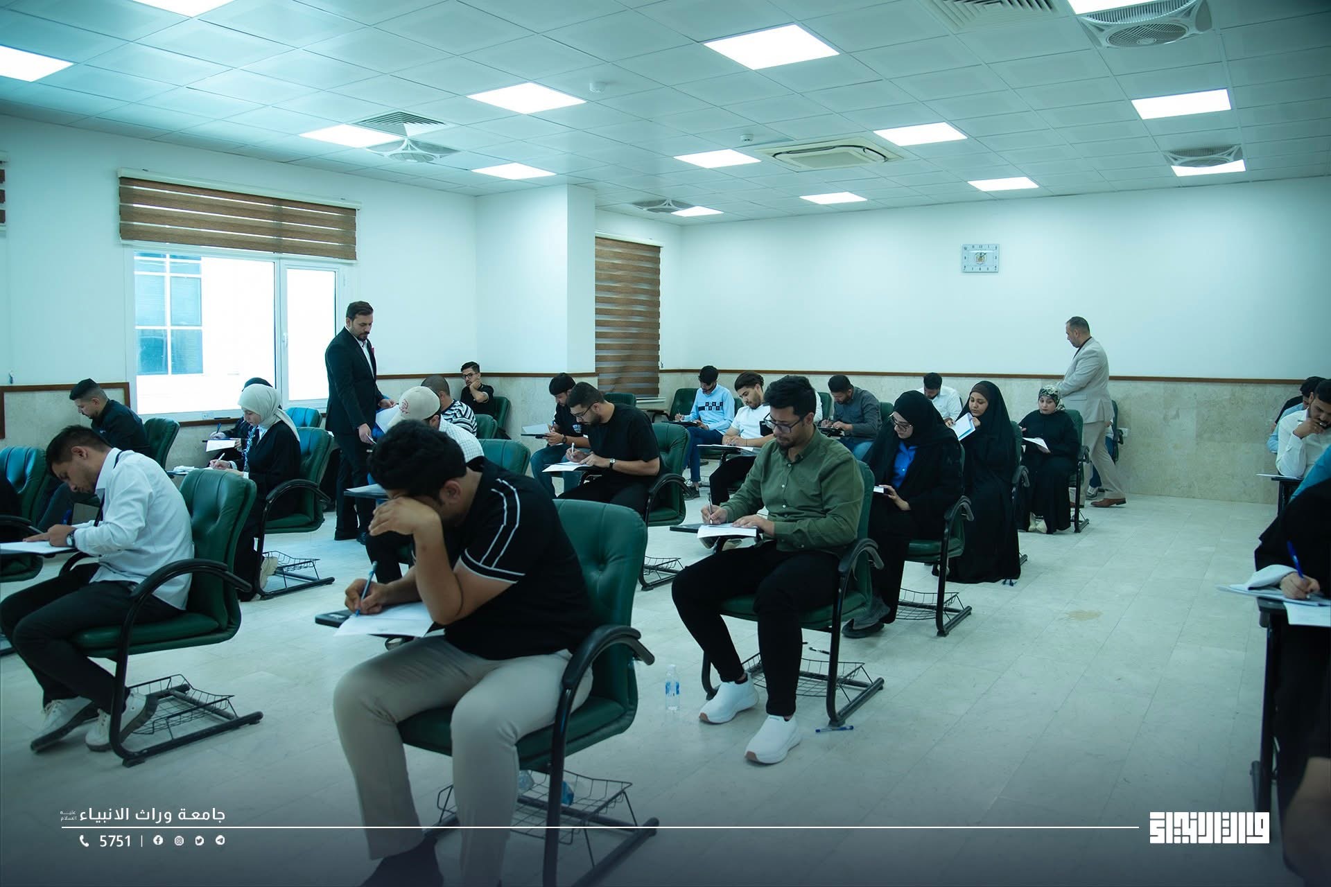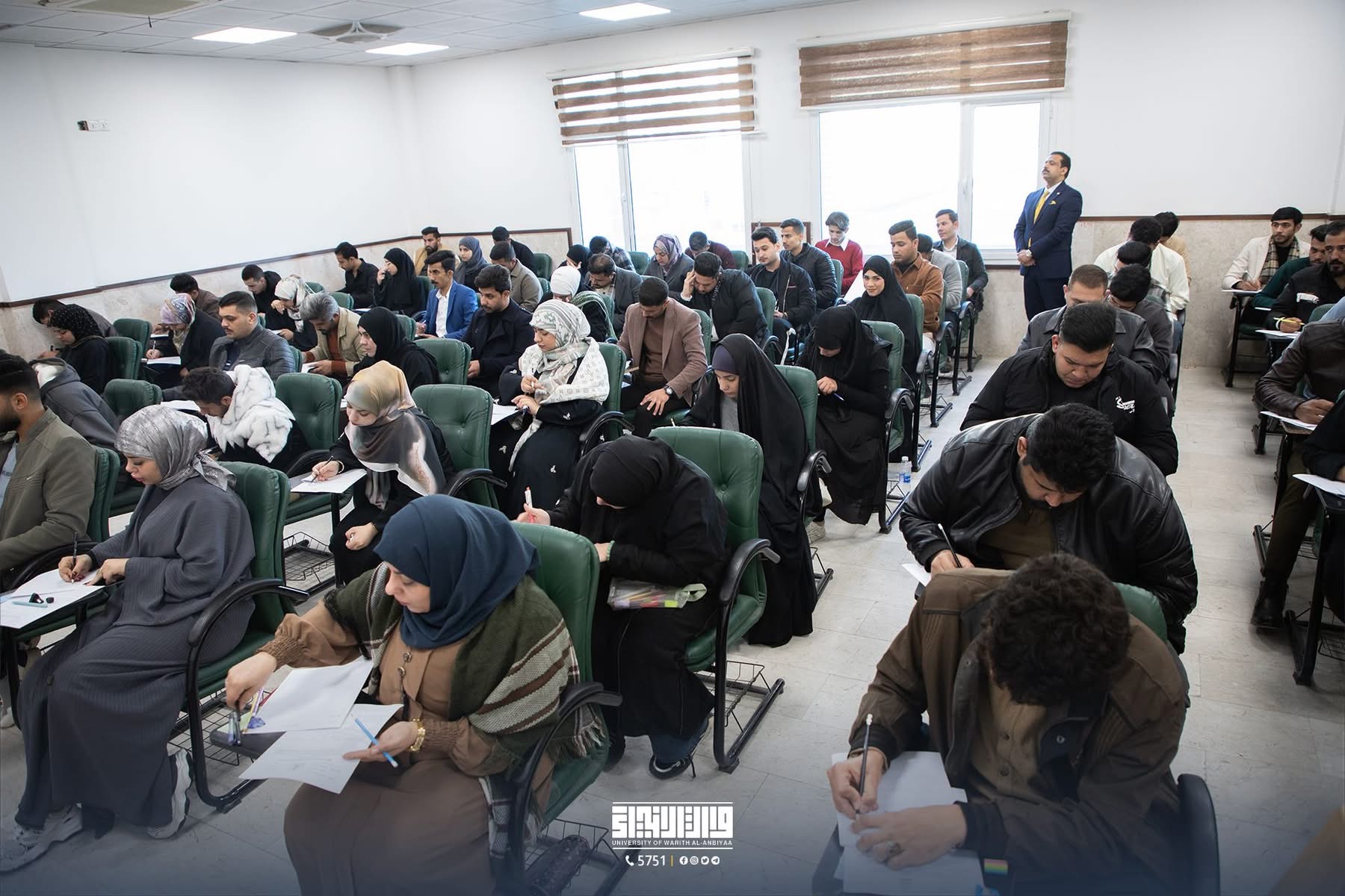 Students of the College of Administration and Economics at the University of Warith Al-Anbiyaa  are taking the second-round examinations in a highly organized atmosphere, under the direct supervision of the esteemed Dean.