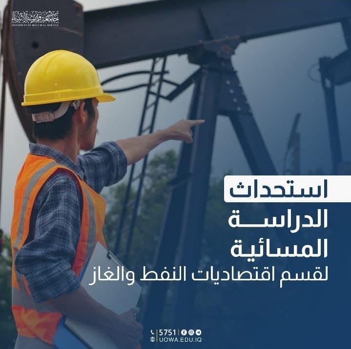 The University of Warith Al-Anbiyaa  is pleased to announce the establishment of the Evening Studies Program for the Department of Oil and Gas Economics at the College of Administration and Economics.
