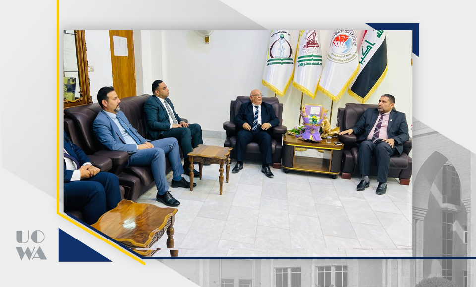As part of enhancing academic cooperation and exchange of expertise between academic institutions, a delegation from the College of Administration and Economics at Warith al-Anbiya University, headed by Professor Awad al-Khalidi, visited the College of Tourism Sciences at the University of Karbala to discuss prospects for academic and research cooperation between the two sides.