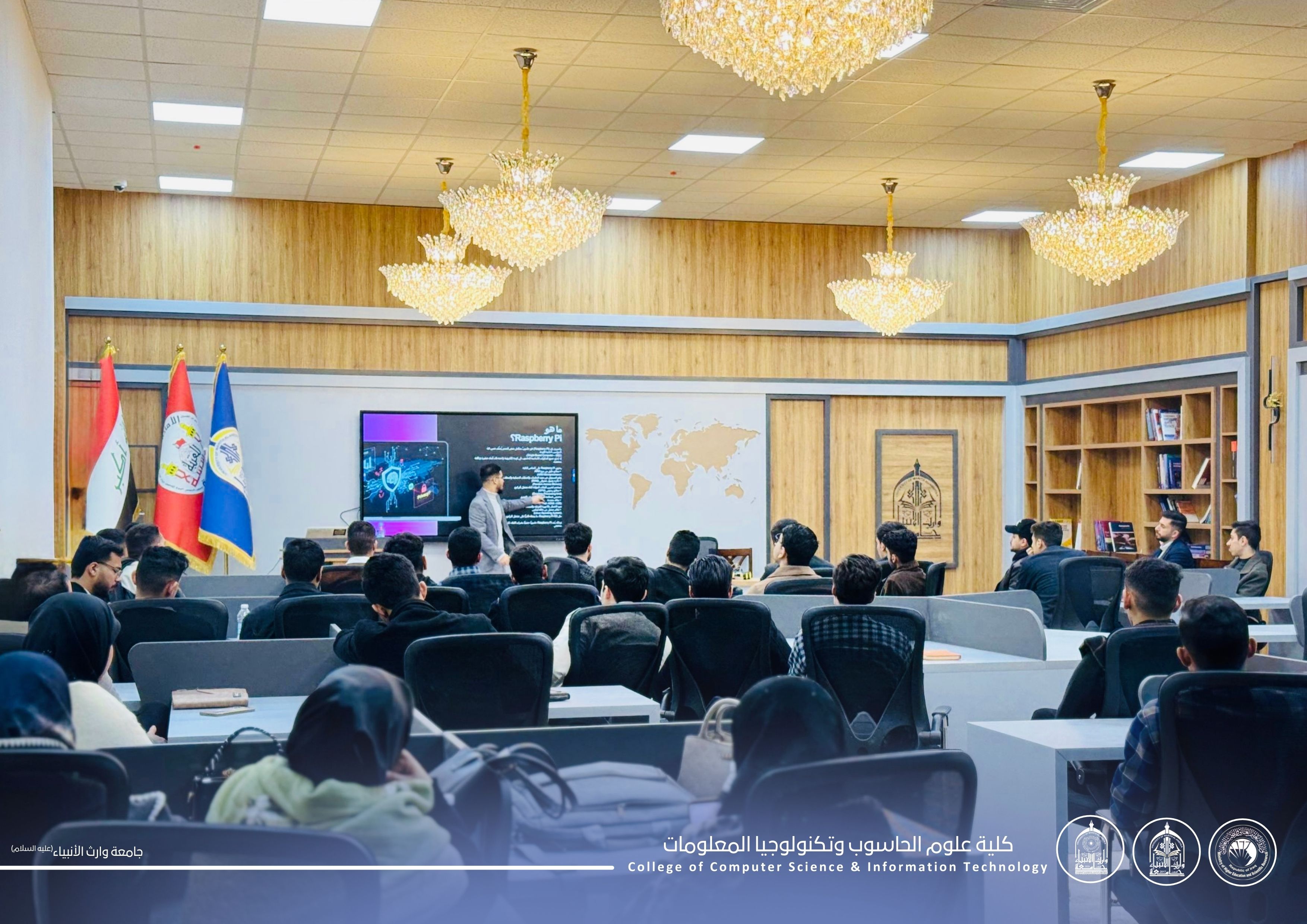 The activities of the Arduino Learning Workshop continued for the second consecutive day at the College of Computer Science and Information Technology – University of Warith Al-Anbiyaa (peace be upon him), with notable interaction from first-year students.