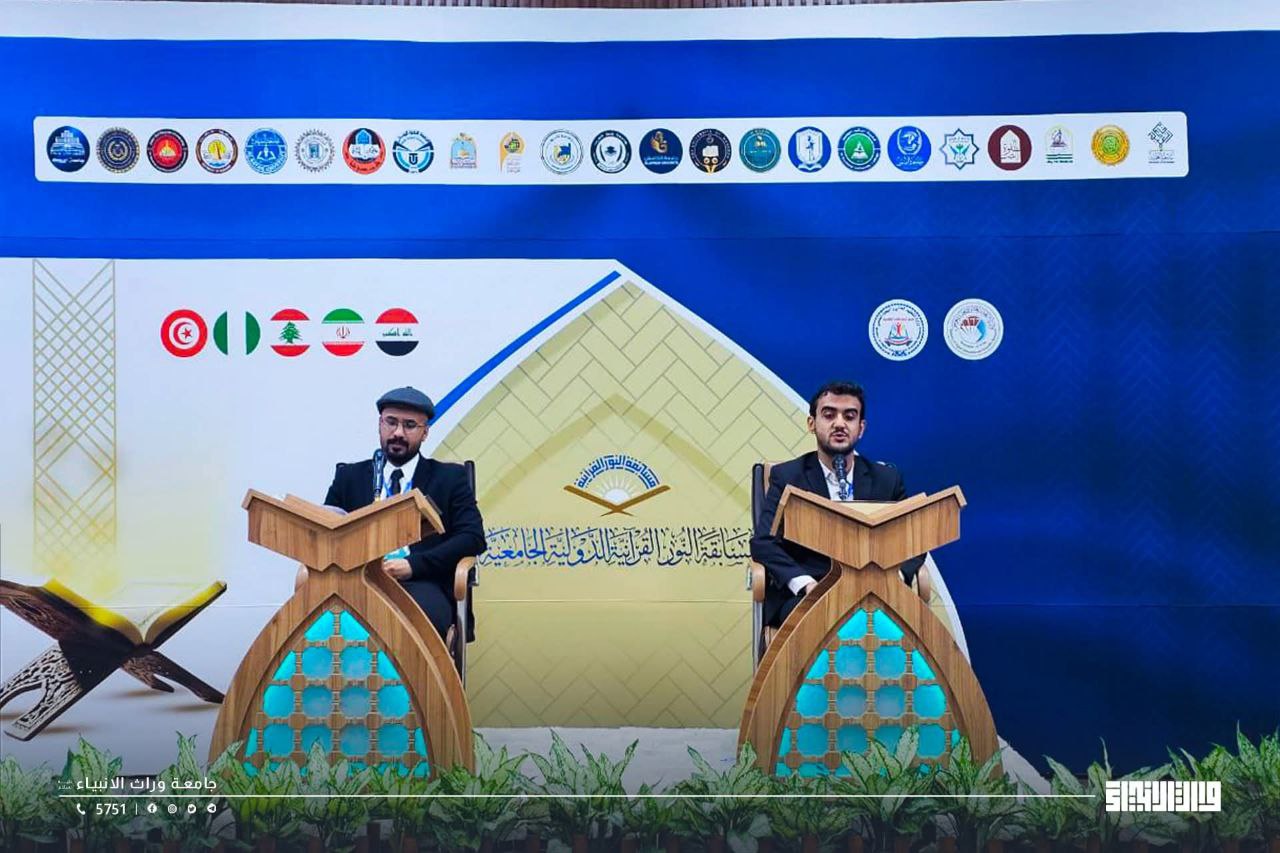 The College of Islamic Sciences at the University of Warith Al-Anbiyaa (peace be upon him) participated in the International Al-Noor University Quranic Competition, organized by the Ministry of Higher Education and Scientific Research, with the participation of 53 Iraqi universities and 6 international universities from various countries around the world. The competition was hosted by Al-Ameed University.