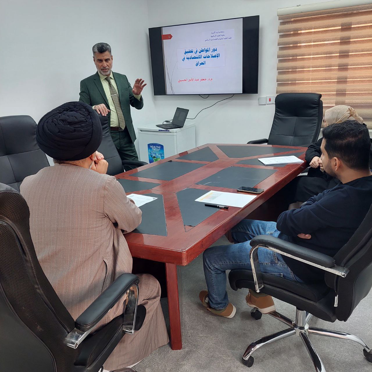 In an important step towards finding a solution to the economic challenges facing Iraq, the College of Islamic Sciences at the University of Warith al-Anbiya held a discussion workshop entitled "The Role of Citizens in Achieving Economic Reforms" on Wednesday, December 6, 2023.