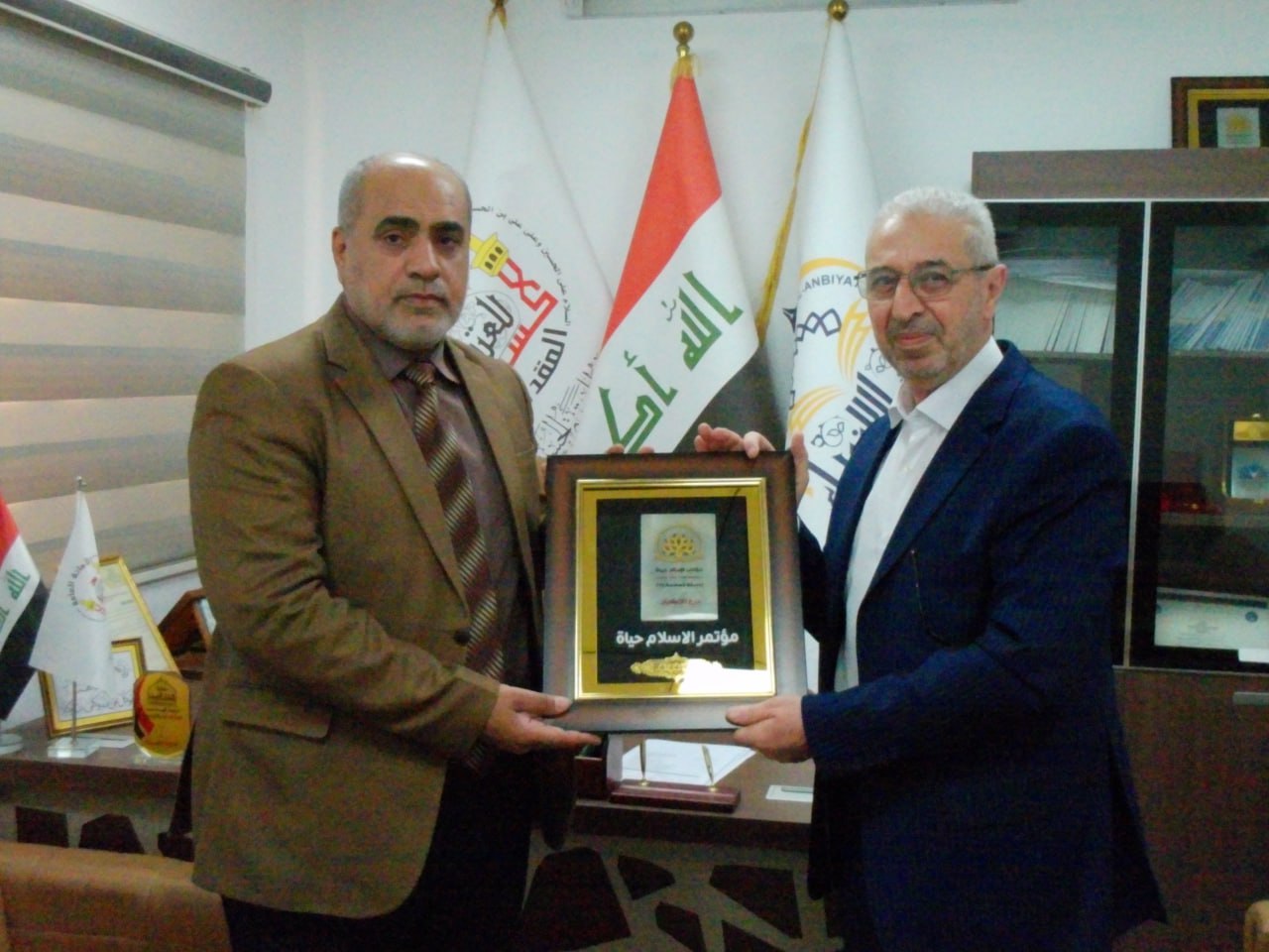 The Dean of the College of Islamic Sciences at Warith Al-Anbiyaa University (peace be upon him), Dr. Talal Faiq Al-Kamali, received the Dean of the College of Islamic Sciences at the University of Baghdad, along with the accompanying delegation, during a visit aimed at strengthening academic and scientific relations between the two colleges.