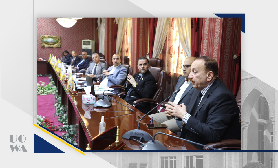 The College of Medicine, Warith Al-Anbia University, in implementation of the scientific cooperation agreement, sent Professor Dr. Talib Jawad (Director of the Accreditation Unit at the College and a member of the National Council for Institutional Accreditation) upon their request to be a guest at the esteemed University of Diyala Council, conveying the greetings and wishes of the Presidency of Warith Al-Anbia University and the Deanship of the College of Medicine. The questions and inquiries of some members of the Council at the University of Diyala regarding institutional accreditation were clarified and answered. A comprehensive explanation of some points was provided by him. The President of the University of Diyala and those present praised the mutual cooperation between the two universities and called for increasing scientific communication and mutual visits at the level of professors and students. He wished the University of Warith Al-Anbia continued success.