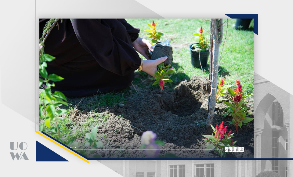 In a scene that reflects a spirit of cooperation and belonging, a number of students and faculty members from the College of Medicine at Warith al-Anbiya University (peace be upon him) participated in a campaign organized by the Decoration and Landscaping Division of the Diwan Affairs Department to plant several green spaces on campus.