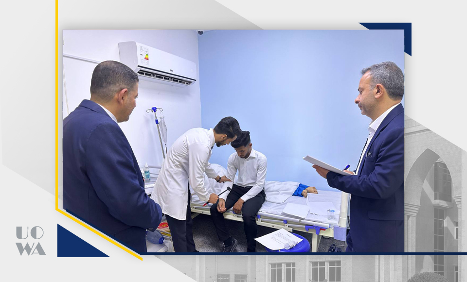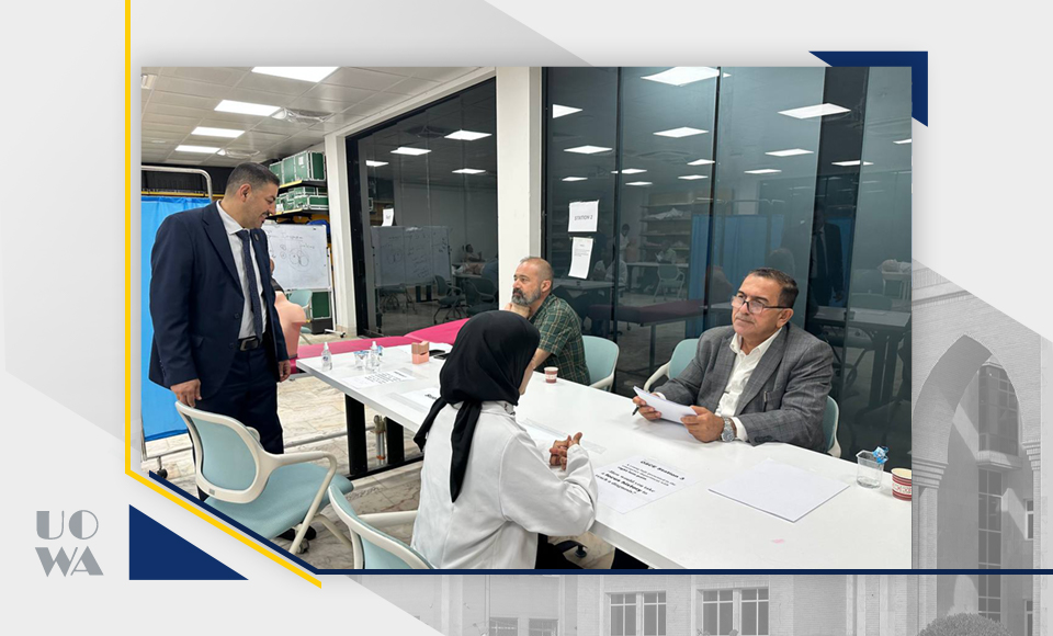 Under the direct supervision of the Dean of the College of Medicine at the University of Warith Al-Anbiya (peace be upon him), Professor Dr. Ali Abdul Saadoun Al-Ghazi, and the follow-up of the Assistant Dean for Scientific Affairs, Dr. Laith Muhammad Abbas, and the Assistant Dean for Administrative Affairs, Dr. Anwar Al-Dahan, the clinical (OSCE) exam was conducted today for fourth-year students. This exam is considered one of the basic requirements for assessing the practical and theoretical skills of stu
