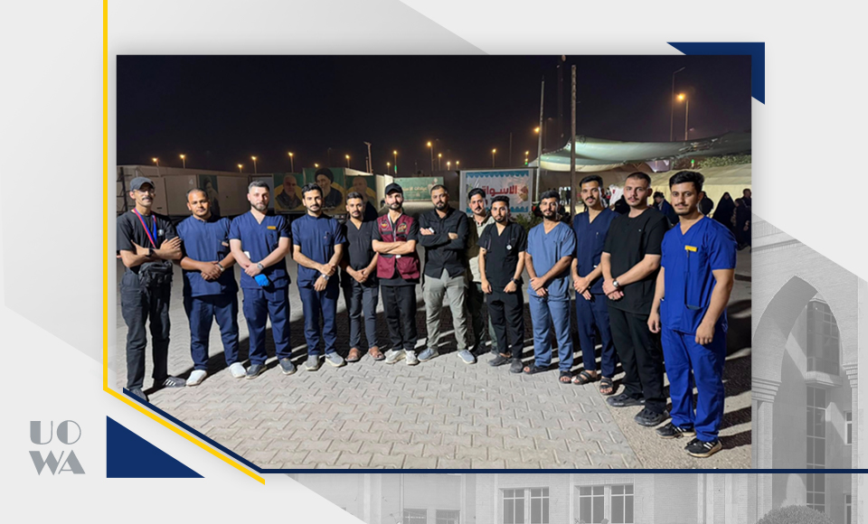 Amidst the sublime spiritual atmosphere of the immortal Arbaeen pilgrimage, the Deanship of the College of Medicine at Warith al-Anbiya University extends its highest expressions of appreciation, pride, and respect to our dear students participating in the medical service detachments deployed along all pilgrims' routes. We express our deep appreciation for the time, effort, and expertise they have devoted to treating, curing, and alleviating the pain of the honorable pilgrims. This would not have been possible without the desire, knowledge, and skill of this good group of our sons and daughters, which enabled them to perform this great task. The evaluations we received from the doctors supervising the work of our volunteer students were wonderful and a source of pride for us all. All supervisors noted the high discipline of our dear students, in addition to their academic potential and clinical skills, which qualify them to work at all times and under the most difficult conditions. This undoubtedly reflects the efforts of the college's professors in training and developing the theoretical, practical, and clinical skills of our dear students. This would not have been possible without the continuous support and ongoing supervision of the esteemed University President. In conclusion, we can only say:
