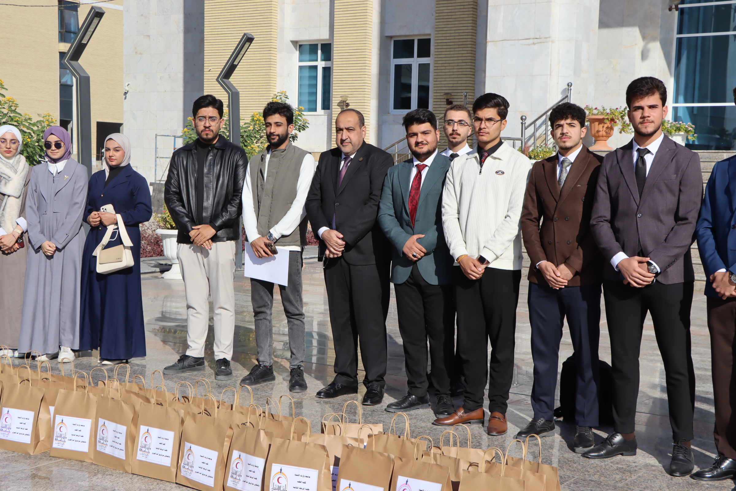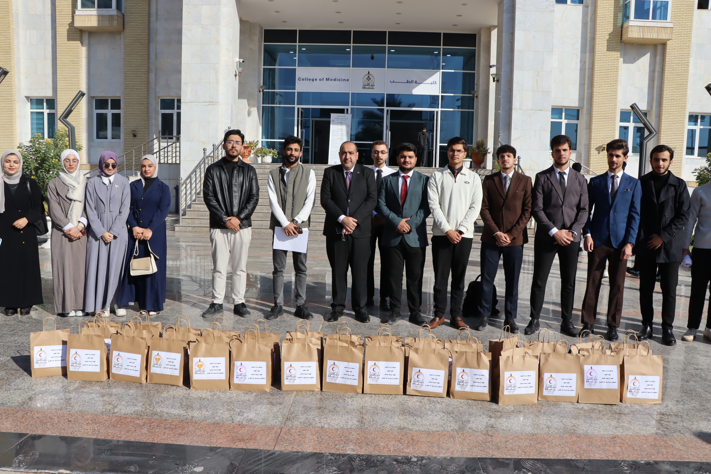 Under the patronage of the esteemed University President and the supervision of the Dean of the College of Medicine at Warith Al-Anbiya University, second-year students organized a field visit to the Children's Hospital in the Holy City of Karbala. During the visit, a number of students visited the hospitalized children, presenting them with gifts and offering them moral support, bringing joy and happiness to their hearts. This visit is part of the humanitarian activities organized by the college to enhance the spirit of cooperation and responsibility among students and to develop their social and humanitarian awareness.