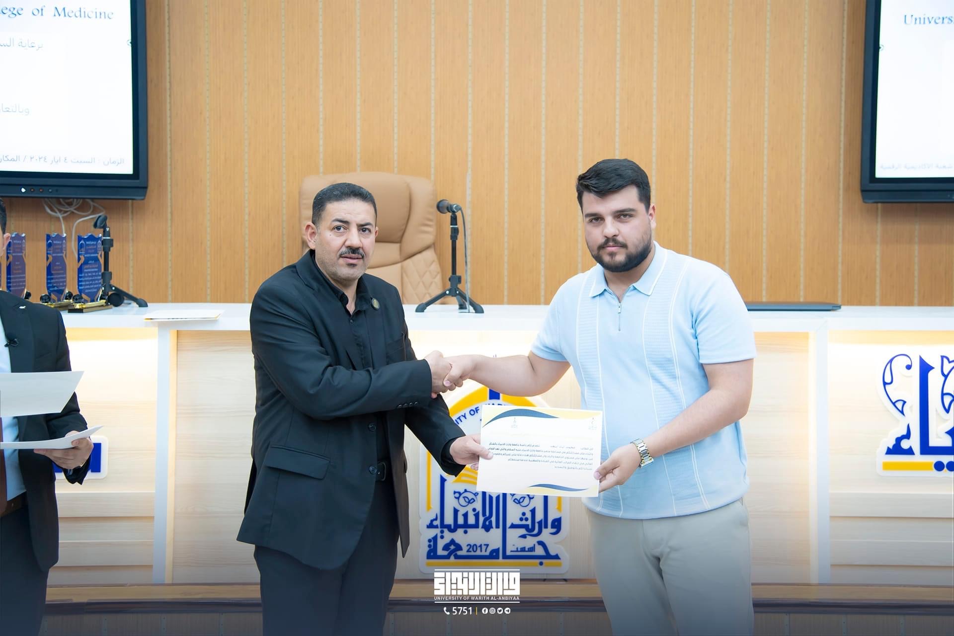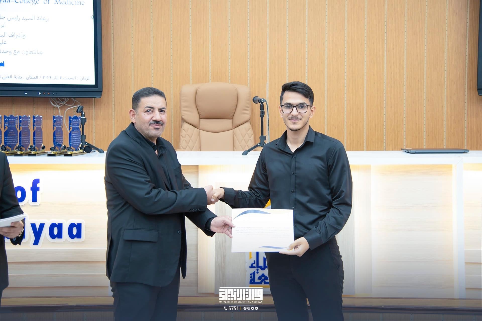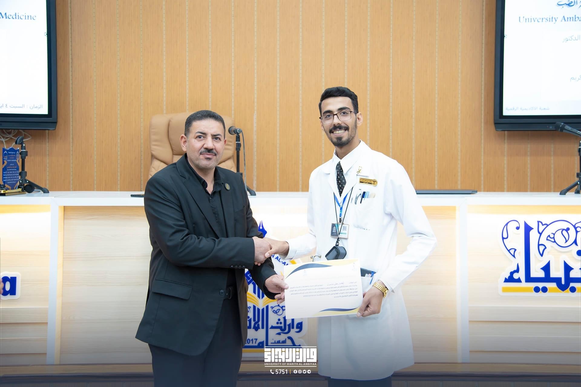 Under the patronage of the President of the University, Professor Dr. Ibrahim Saeed Al-Hayawi, and in the presence of the Dean of the Faculty of Medicine, Professor Dr. Ali Abd Saadoun Al-Ghazi, the Deanship of the Faculty of Medicine, in cooperation with the “Warith Elevate” team and the Department of Quality Assurance and University Performance, launched the project (Preparation and Selection of University Medical Ambassadors), which aims to represent the university and the country, whether locally or internationally.
