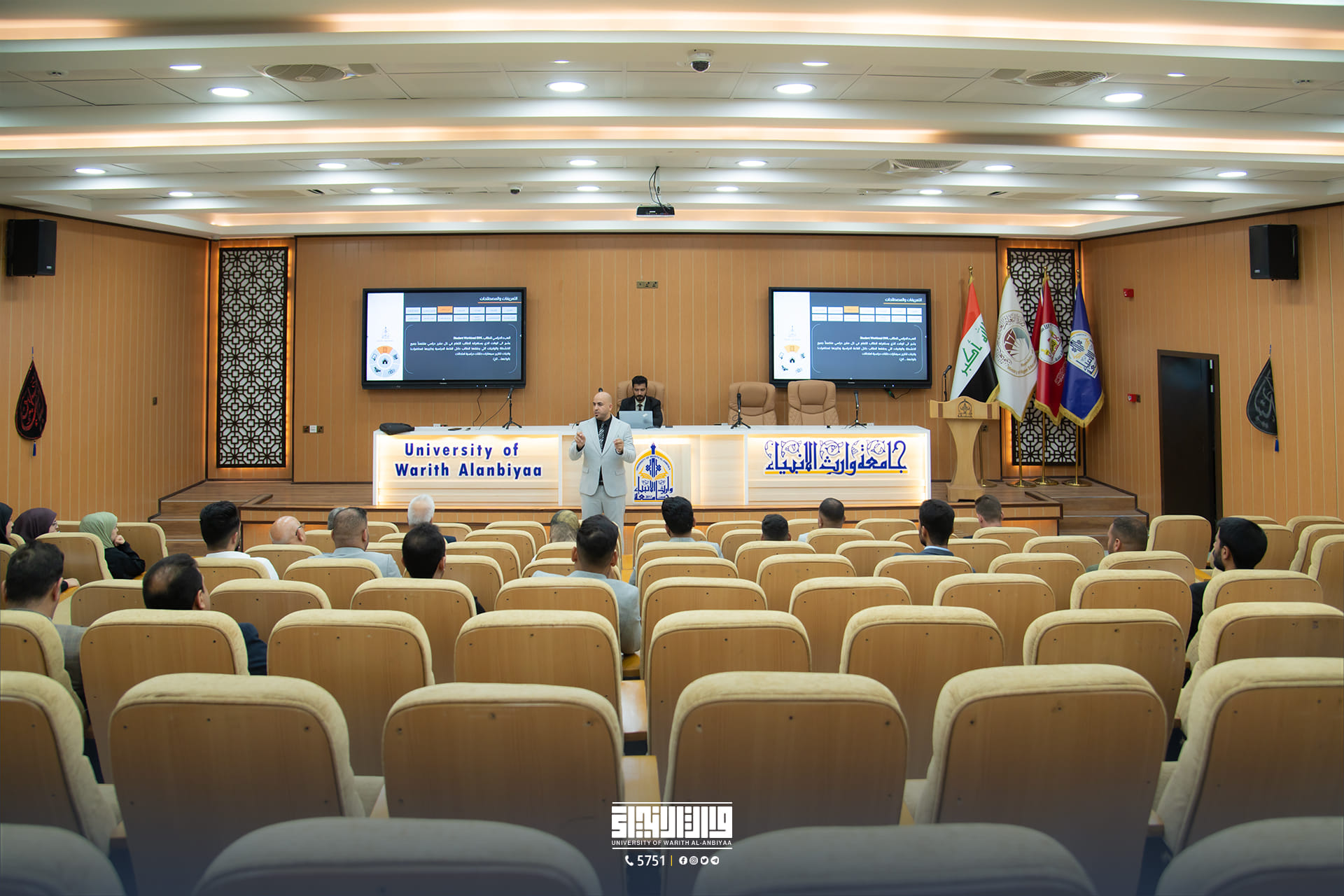 At the direction of the esteemed Dean of the College of Science, Assistant Professor Dr. Shaimaa Hussein Nofal, the College of Science at Warith Al-Anbiyaa University organized a cultural symposium titled "Building University Identity and Its Foundations," presented by the Dean of the College of Islamic Sciences, Assistant Professor Dr. Talal Al-Kamali. The symposium targeted the college students and highlighted the importance of university identity and its role in enhancing academic and cultural values among students.
