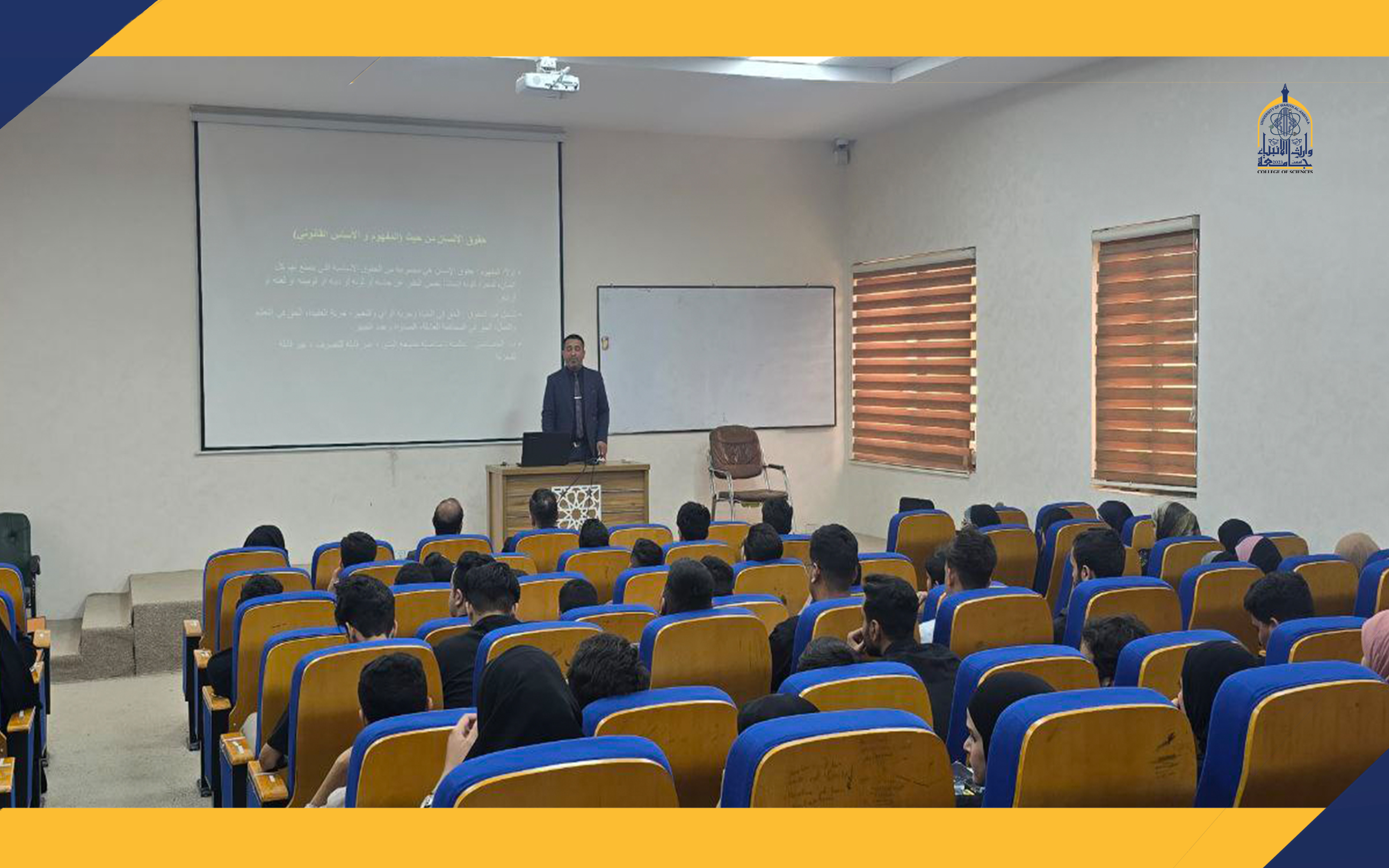 The College of Sciences at the University of Warith Al-Anbiyaa (peace be upon him) organized a workshop titled "Human Rights: Concept and Legal Foundation." The session was delivered by Lecturer Abbas Taher and aimed to enhance the students' understanding of fundamental legal and social issues.